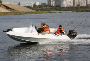 Конструкция моторной лодки "Казанка-5М7" в базовом варианте представляет собой композитную лодку открытого типа без палубной части (вместо палубы сконструировано дополнительное 1,5-местное сиденье).